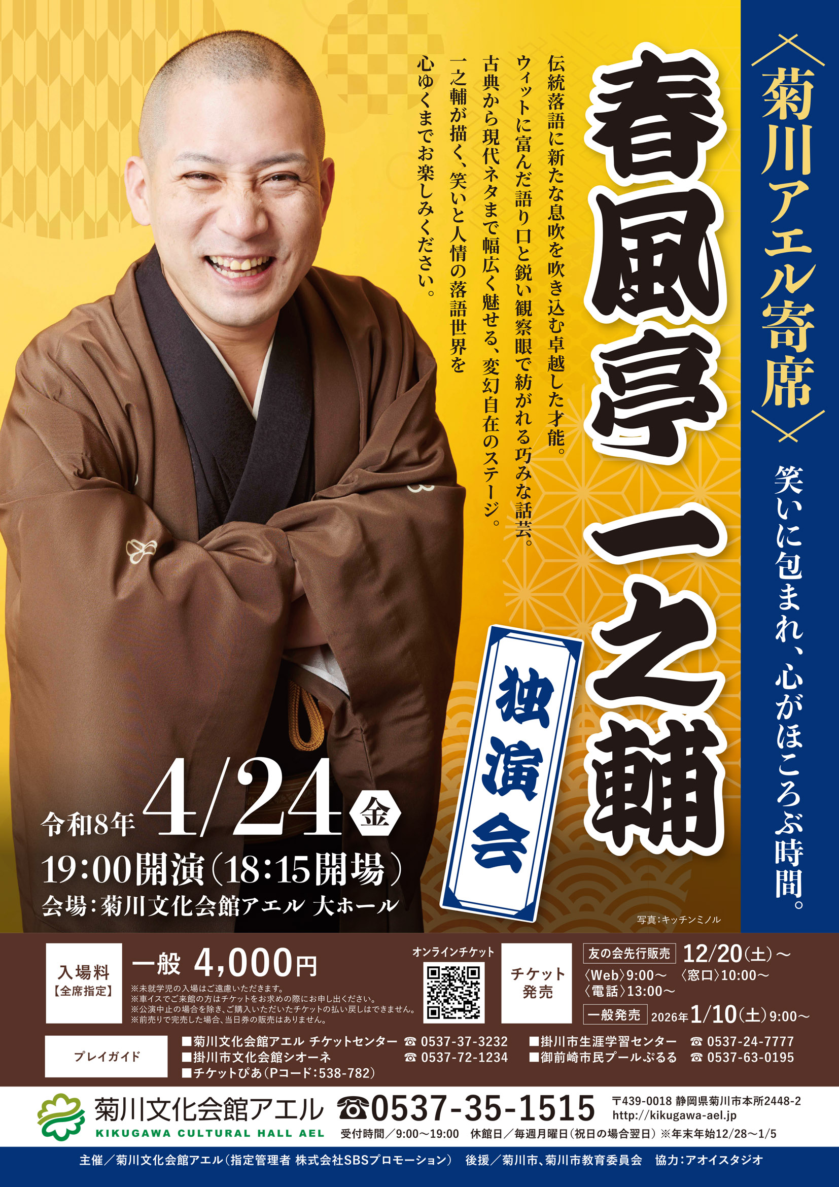 このたび、菊川市文化会館条例の改正に伴い、令和8年4月1日以降のご利用分から、施設使用料金が改定することとなりました。